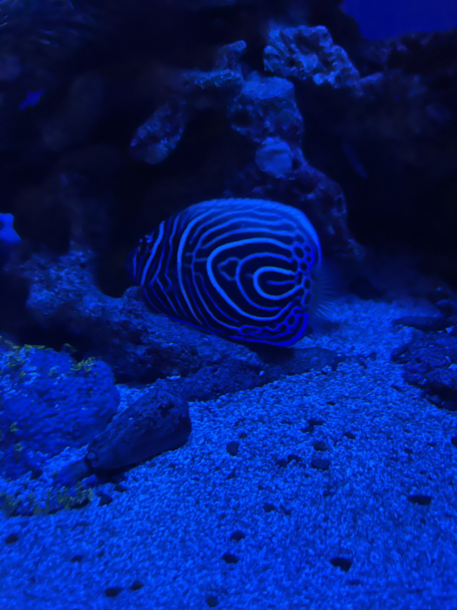 ニフレルに呪術廻戦のopに出てくるタテジマキンチャクダイ 幼魚 がいたよ 成魚と模様が違うよ メガネモチノウオのことを メガネモチウオ って間違えて覚えてたよ 別名ナポレオンフィッシュだよ ヒラメの赤ちゃん可愛かったよ もう大きくなったかな ホワイト