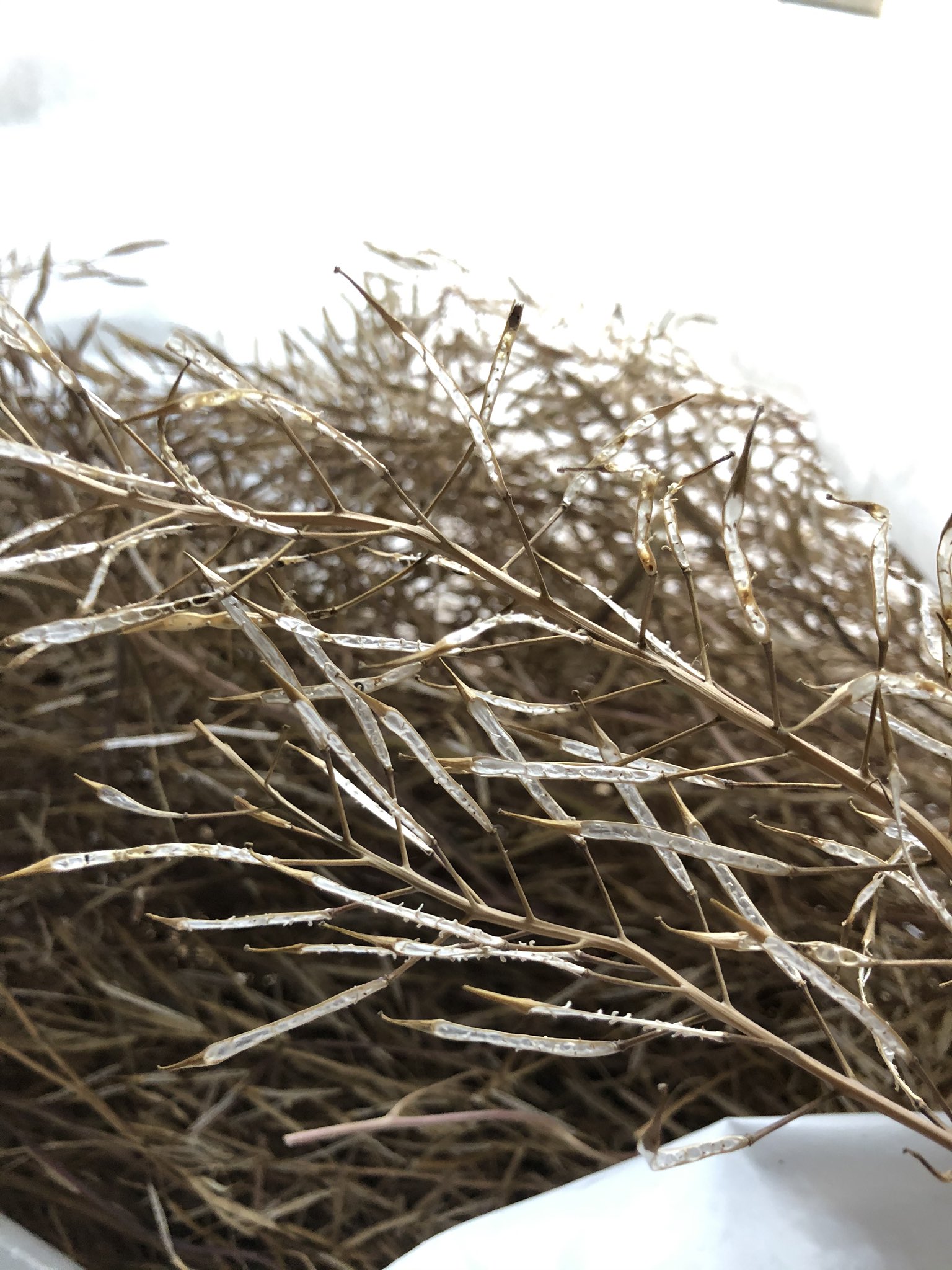黄からし菜の種取り 黄からし菜の種はマスタード 野菜ソムリエの農園便り