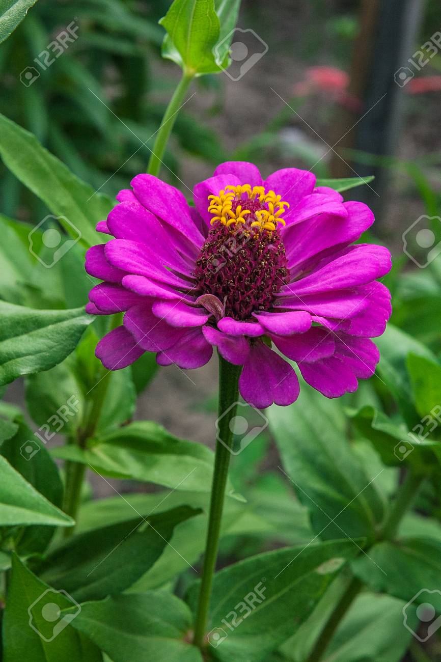 緑の背景に自然の中の紫のジニアの美しい花 の写真素材 画像素材 Image