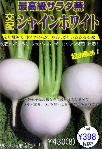 交配 旧名 シャインホワイトかぶ 新名 ピーチホワイトかぶ 市川種苗店