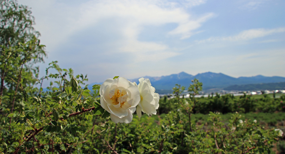 白いハマナスが可憐に咲いています ファーム日誌 花畑の紹介 北海道のラベンダー畑 ファーム富田 オフィシャルサイト