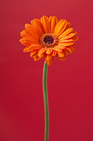赤の背景のオレンジ デイジー ガーベラの花 の写真素材 画像素材 Image