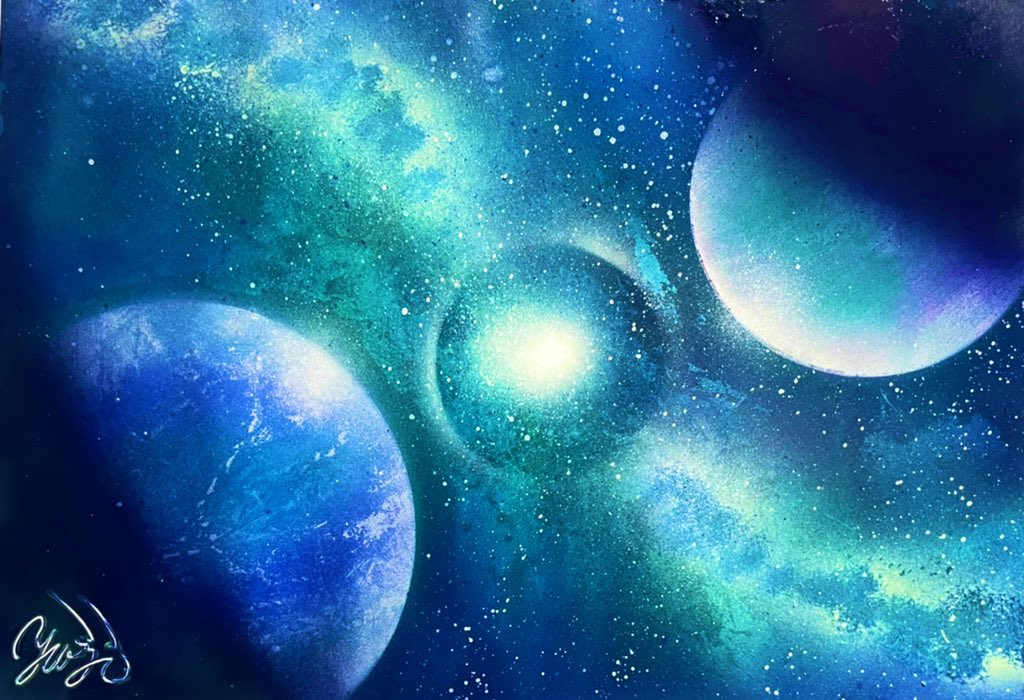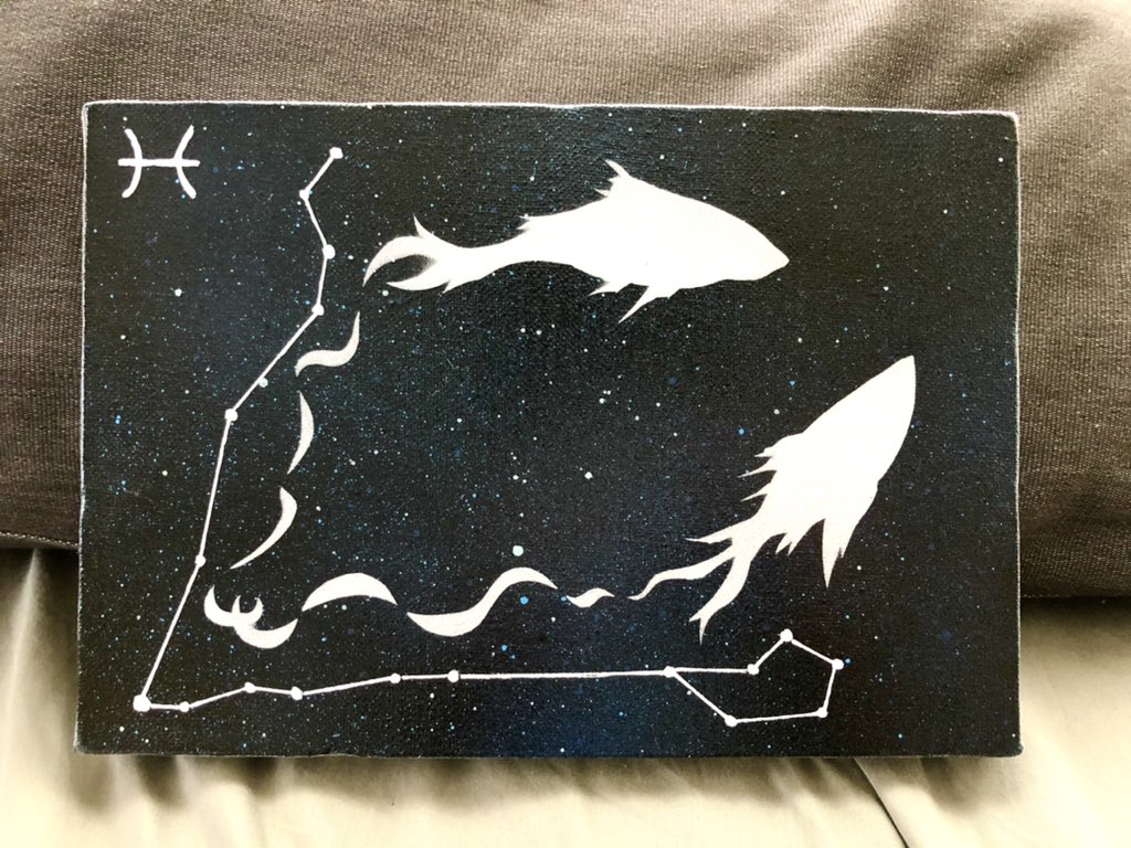 あき Aki Spray Paint スプレーアート作家 パイシース Pisces 双魚宮 うお座 2月19日 3月日 星座 星空 インテリア 黄道十二宮 黄道十二星座 絵 アート スプレーアート ゾディアック Zodiacsigns あなたの星座をお部屋に飾ろう T Co