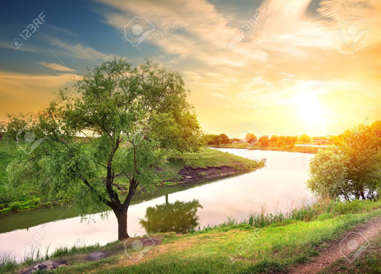 夕暮れ時の田舎の流れ 美しい川の風景写真プレビュー 10wallpaper Com