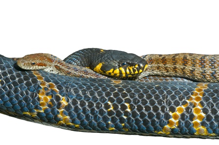 A を二匹の蛇 ナメラ属 Schrenckii とシマヘビ ディオネ のクローズ アップ の写真素材 画像素材 Image