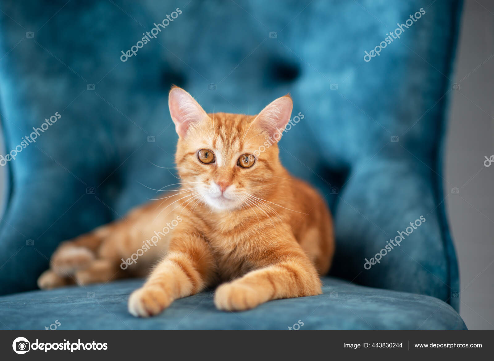Beautiful Young Red Tabby Cat Lying Blue Chair Home Stock Photo By C Khorzhevska