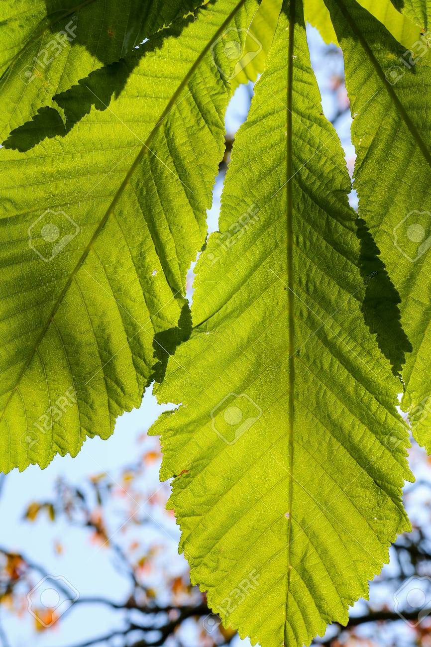 明るい緑の葉と太陽に照らされた馬栗葉 の写真素材 画像素材 Image