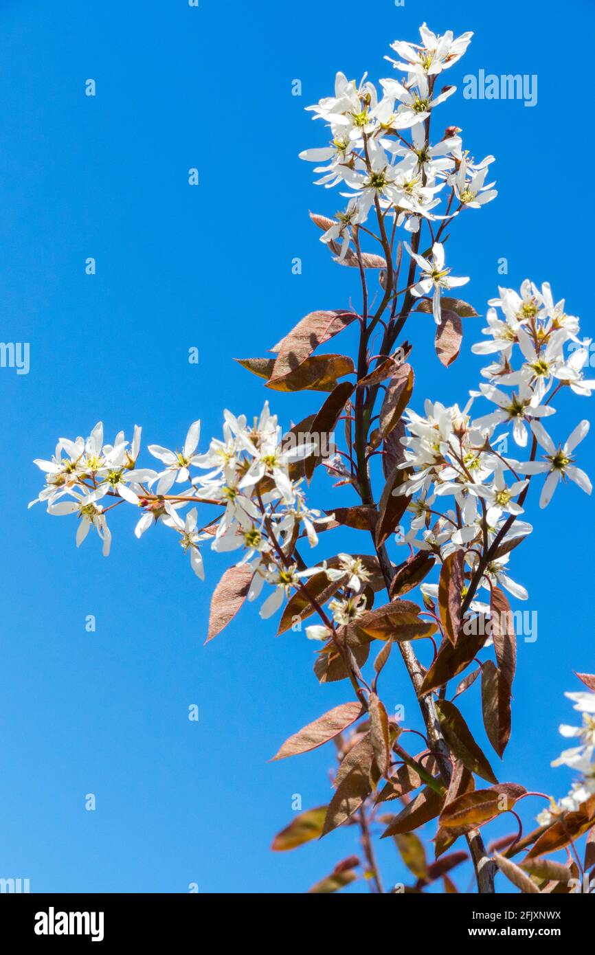 Amelanchier Lamarckii Serviceberry Or Juneberry White Star Shaped Flowers And Bronze Leaves April England Uk Stock Photo Alamy