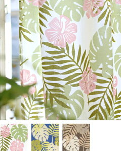送料無料 カフェカーテン パレカイコ モンステラ ハワイアン柄 間仕切り 小窓 インテリア雑貨
