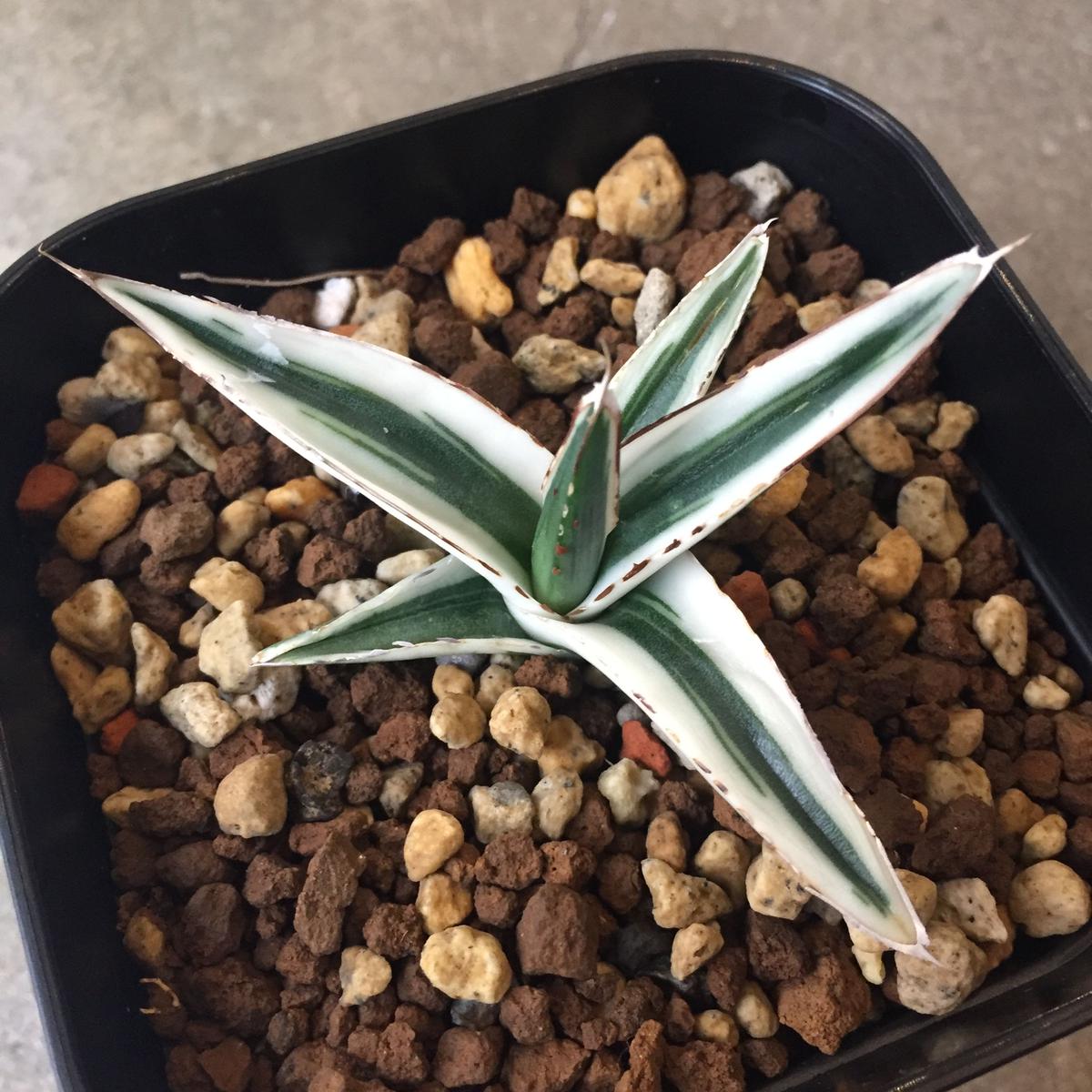 アガベ・笹の雪”輝山” 巾広だるま鮮黄色覆輪斑種。植替えの際2つ子供を外した。 葉丈が短いので葉数が増え大きく育っても丸く纏まる。 アガベ・屈原の舞扇(左)、アガベ・アスペリフォリア(Agave asperifolia)(右) 葉先の刺が強烈な大型アガベの子苗。. Agave victoria reginae “Hyozan“ / アガベ・ヴィクトリア レジーナ “氷山“ サイズは写真のスケールをご確認ください。 数あるアガベの中でも最高峰の1つとされる「氷山」の子株です。 子株ながら氷山の特徴である透明感のある白覆輪斑も冴えた大変美しい一株です。 商品撮影日 21年12月29日. アガベ 華厳 sold out;.