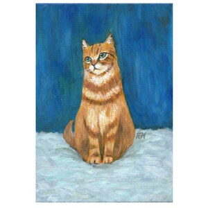 Cat Painting Art Print Blue Grey And A Ginger Cat Orange Etsy