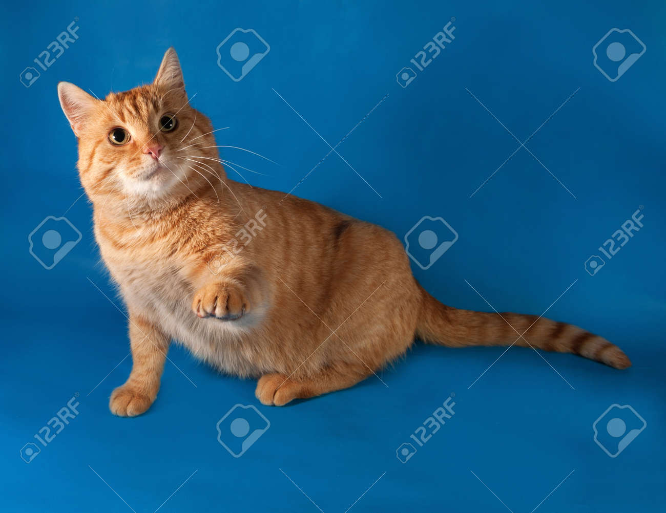 Ginger Tabby Cat Sitting On Blue Background Canstock
