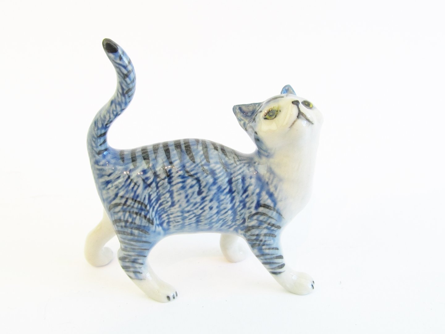 Buy Miniature Ceramic Cat Figurine Blue Tabby With White