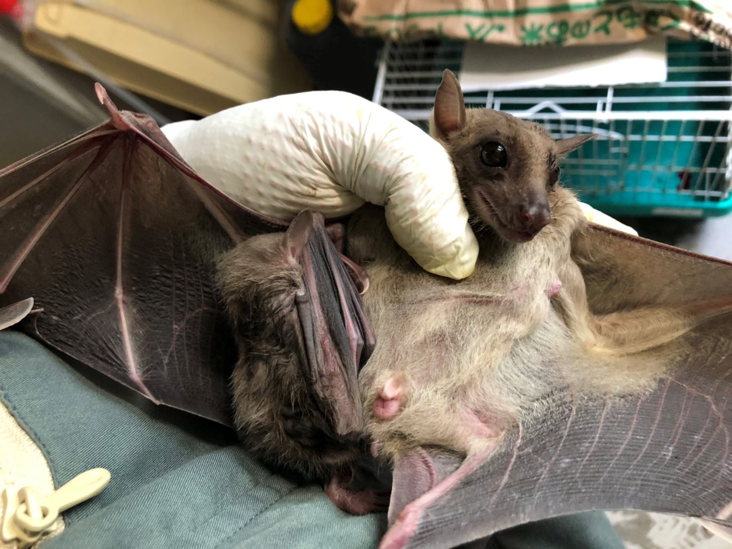 鹿児島市平川動物公園 年に一度のエジプトルーセットオオコウモリの頭数調査を行いました 洞窟内のコウモリ を捕まえて性別や健康状態などをチェックします 子どもを連れたお母さんも何頭かいました さて どこに赤ちゃんがいるか分かりますか 脇に乳首が