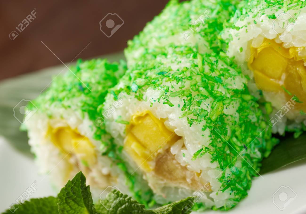 寿司和食 スモーク魚と魚卵を緑で作られたロール の写真素材 画像素材 Image