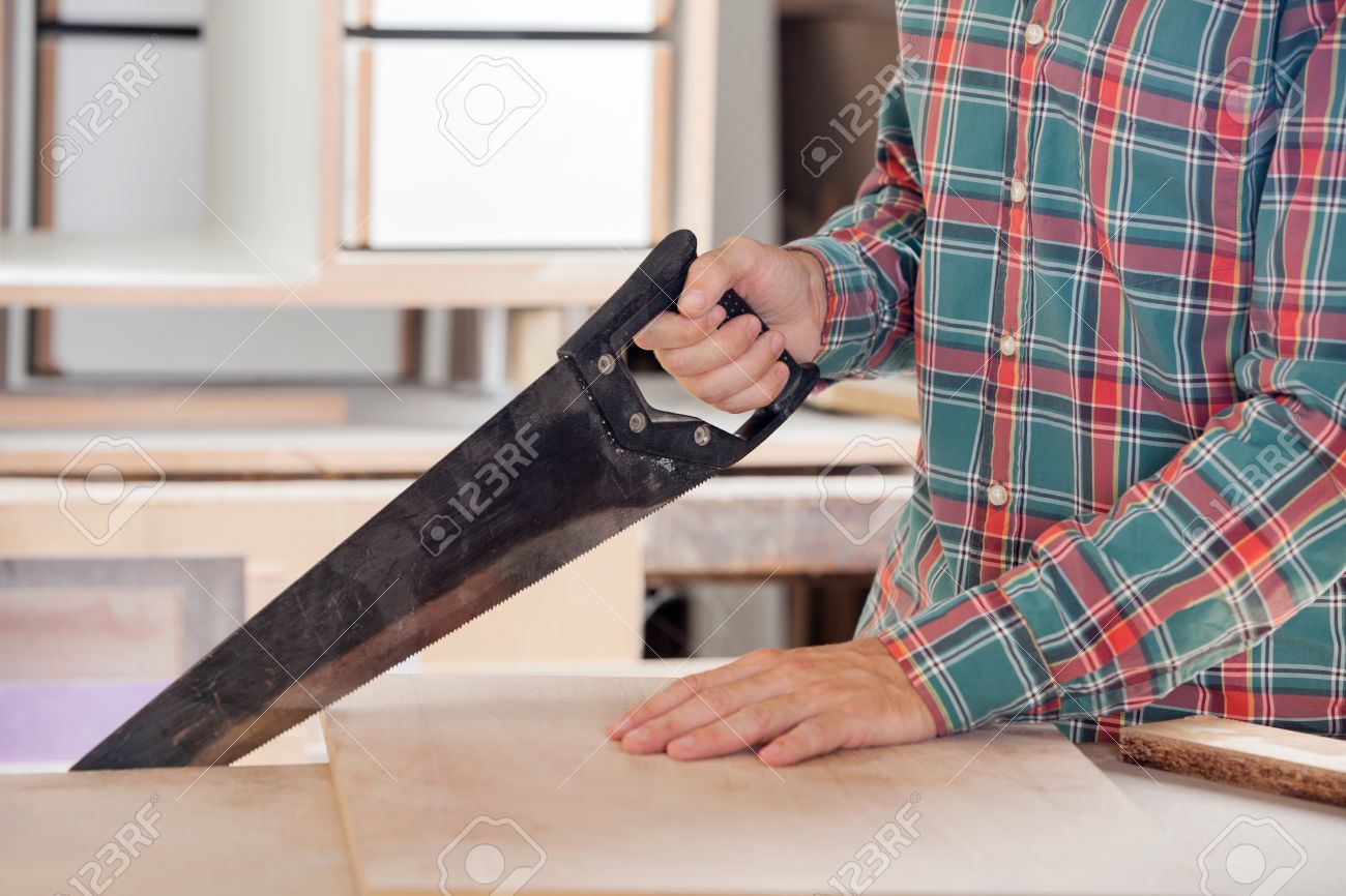 大工 のこぎりで切る A 木製の板 クリップアート 切り張り イラスト 絵画 集 U Fotosearch