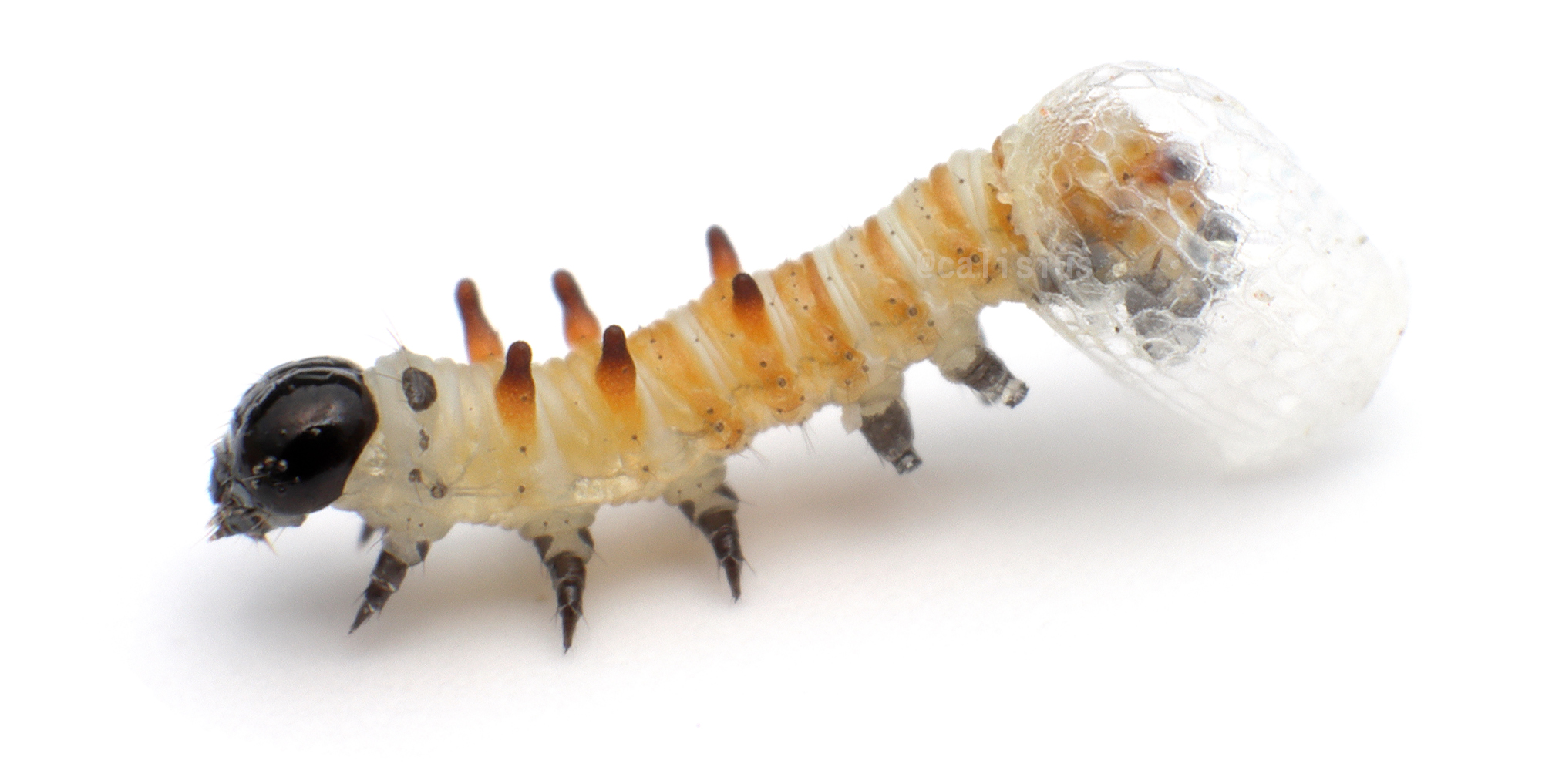 脱皮前後のアカボシゴマダラの幼虫(1→2齢、63→68mm頭部と尾部の突起部含む) 16年9月3、4日 撮影 静岡市駿河区 飼育 静岡市駿河区大谷 採卵 個体2。早くも脱皮しました。1齢期間はわずか3日。 トップページへ. オオゴマダラの幼虫は何度か脱皮を繰り返し、成長していきます。 その過程で大きさだけでなく、見た目にも変化が表れていきます。 卵から孵化したばかりの1齢幼虫のオオゴマダラはまだ特徴的な赤い斑点は見られません。 また成長したオオゴマダラの幼虫が黒と白の縞々であるのに対して、1齢幼虫の段階では茶色っぽい色と白の縞々になっています。 それが二回孵化をして3齢幼虫になると赤い斑. 幼虫になってから日前後、身長が5㎝位になれば、蛹への転換期。 蛹になる頃になると、動きが遅くなりジッとし始めます。 そして、頭を下にしてお尻を糸で飼育カゴや、枝にくっつけてぶら下がるのです。 この形になって1日経つと、脱皮が始まり蛹になります。 モゾモゾと器用に動いて皮を脱ぎ、中からオレンジ色した物体が出てきます。 次の日には、黄色と金色の間くらいの.