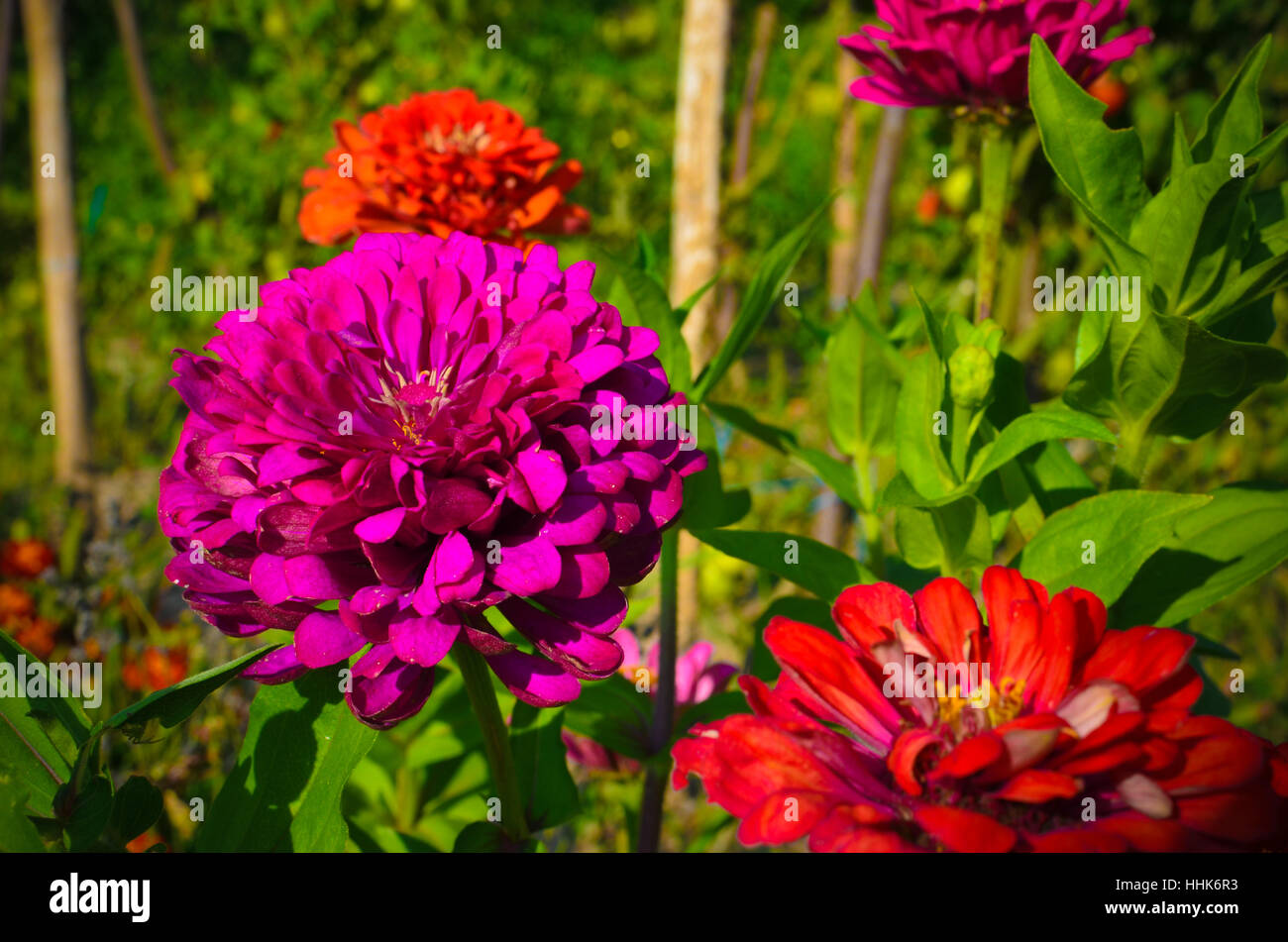 Flower Gardening Zinnia A Genus Of Annual And Perennial Grasses And Dwarf Shrubs Of The Asteraceae Family Red Flowers Stock Photo Alamy