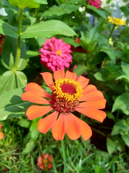 Free Photo Orange Common Zinnia In A Garden Surrounded By Flowers And Bushes Under Sunlight